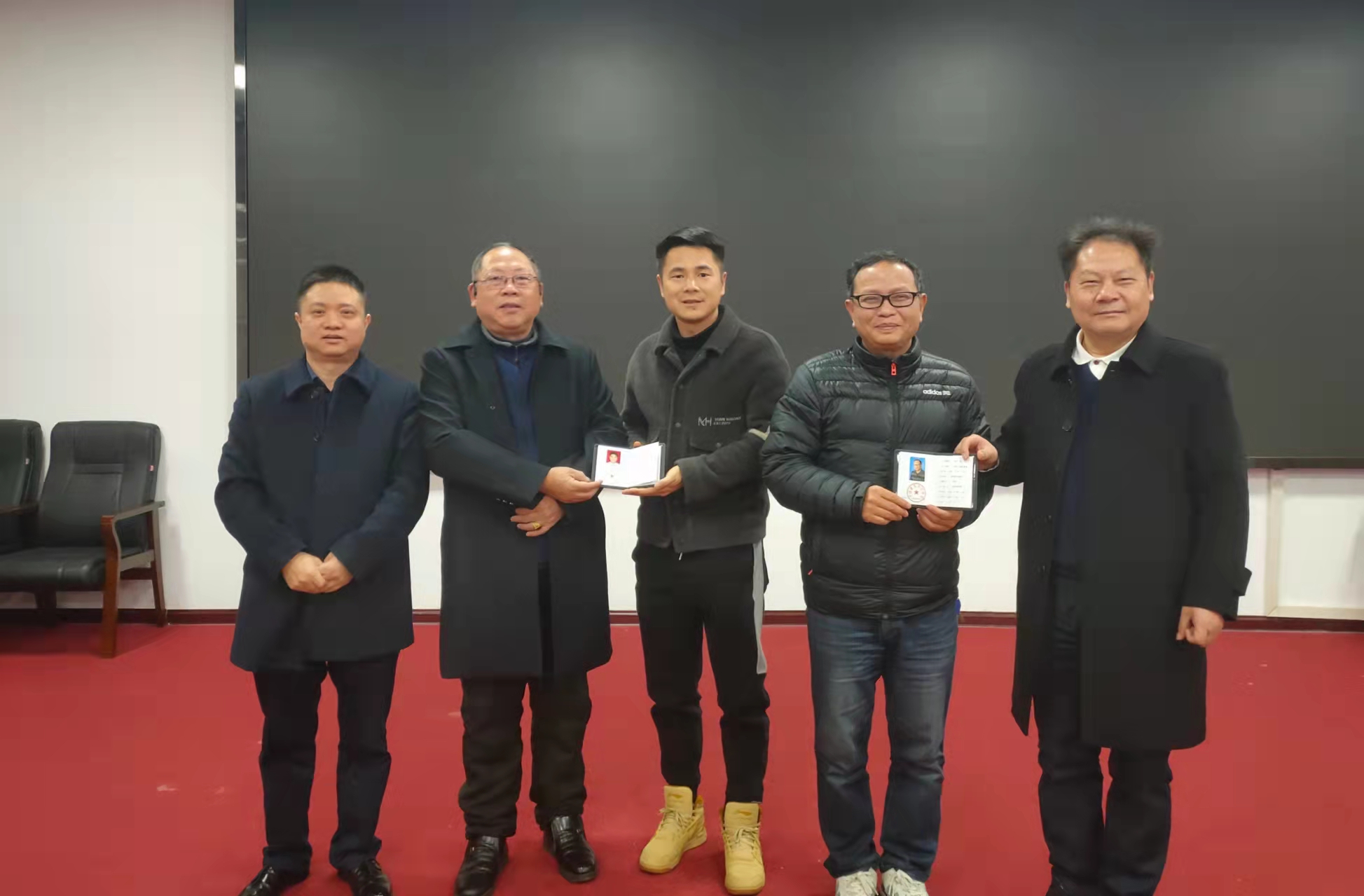 在会上,举行了中国硬笔书法协会会员证颁发仪式,崔国强、肖朝进、宋颖给2021年新加入中国硬笔书法协会的会员胡勇胜、皮涵军颁发了会员证。