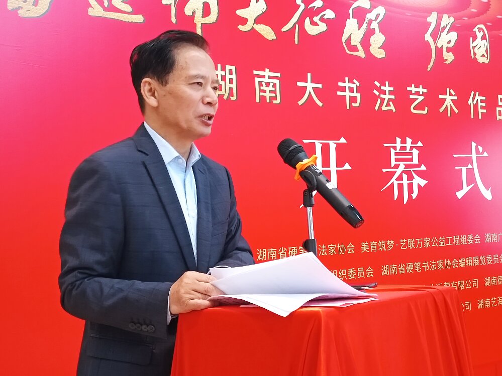 湖南省政协原副主席、省关工委常务副主任武吉海对活动表示高度肯定和赞扬,并宣布大书法展开幕。